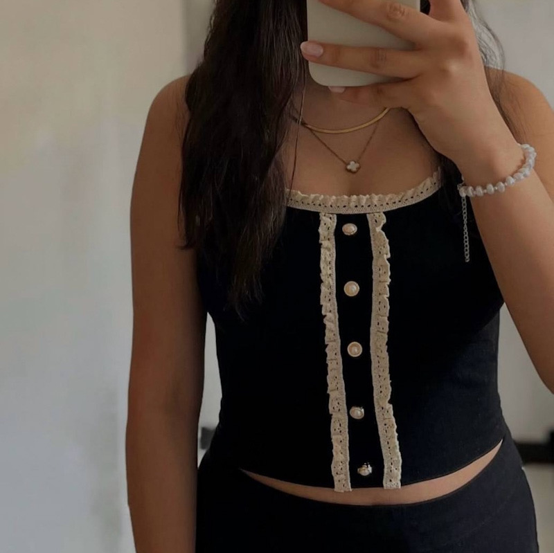 تاپ دکمه‌دار مکرومه عروسکی زنانه