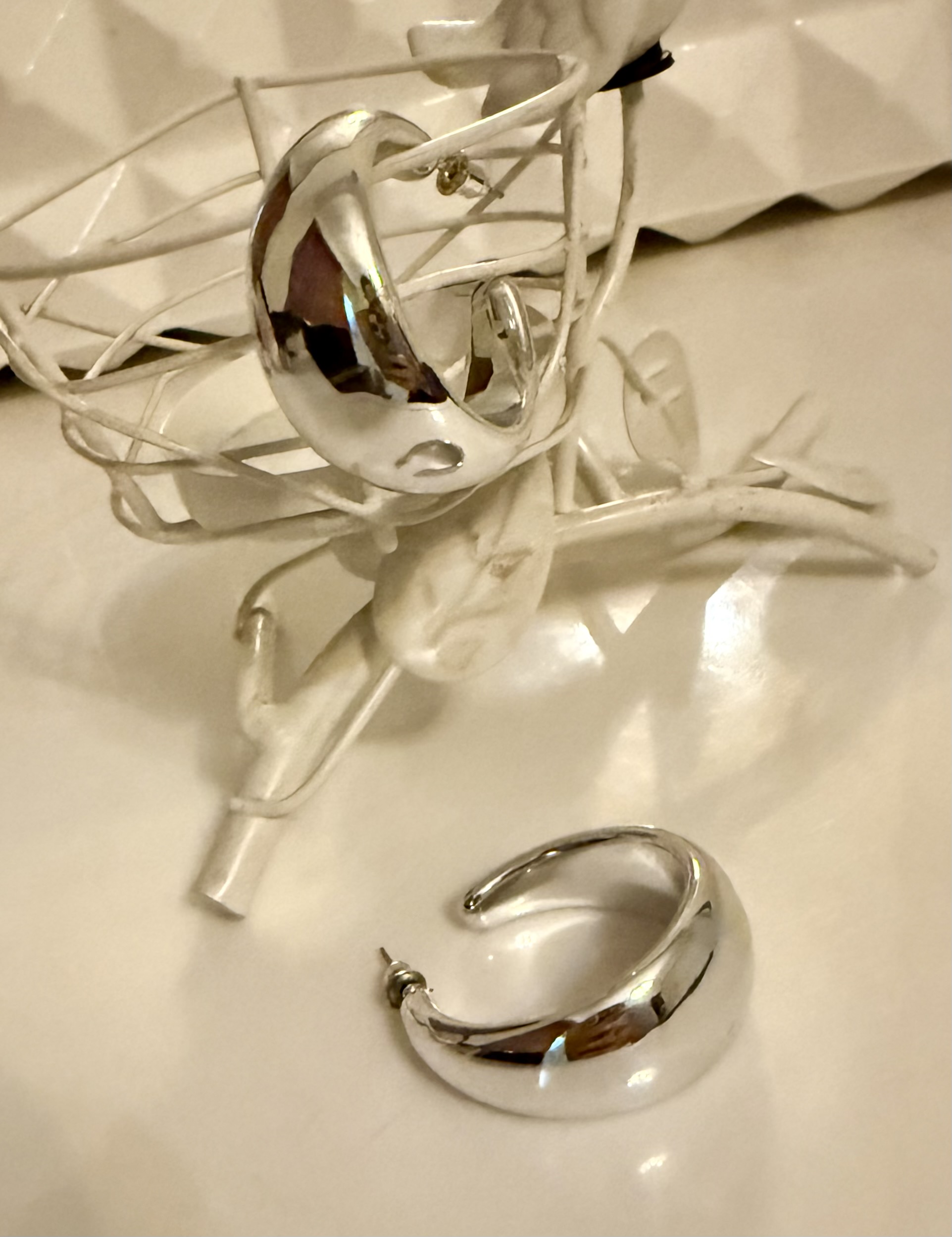گوشواره حلقه‌ای رنگ نقره‌ای زنانه