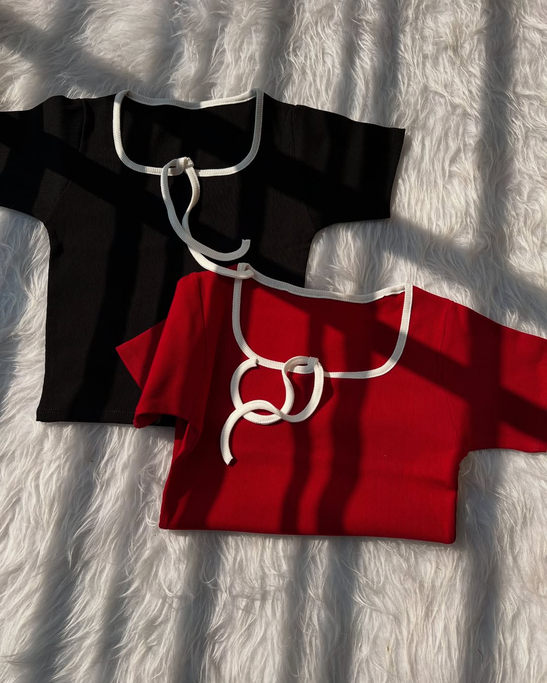 . کراپ آستین دار پاپیونی در رنگهای تصویر موجود شد . . قد کار ۴۵ سانت ، عرض کار ۳۶