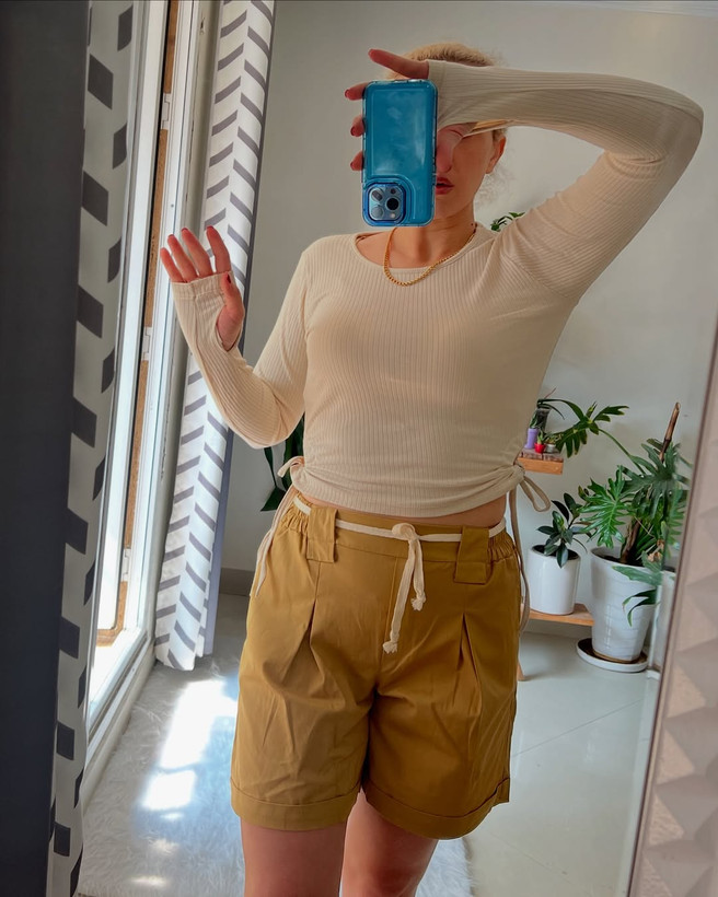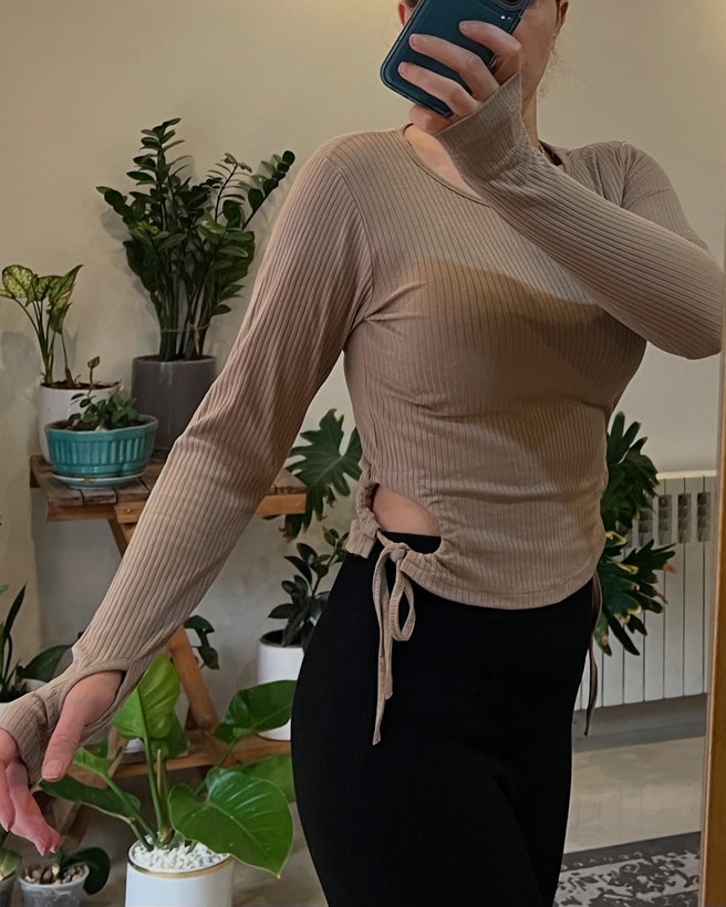 کراپ آستین بلند پارچه‌ کرکره‌ای آستین بلند